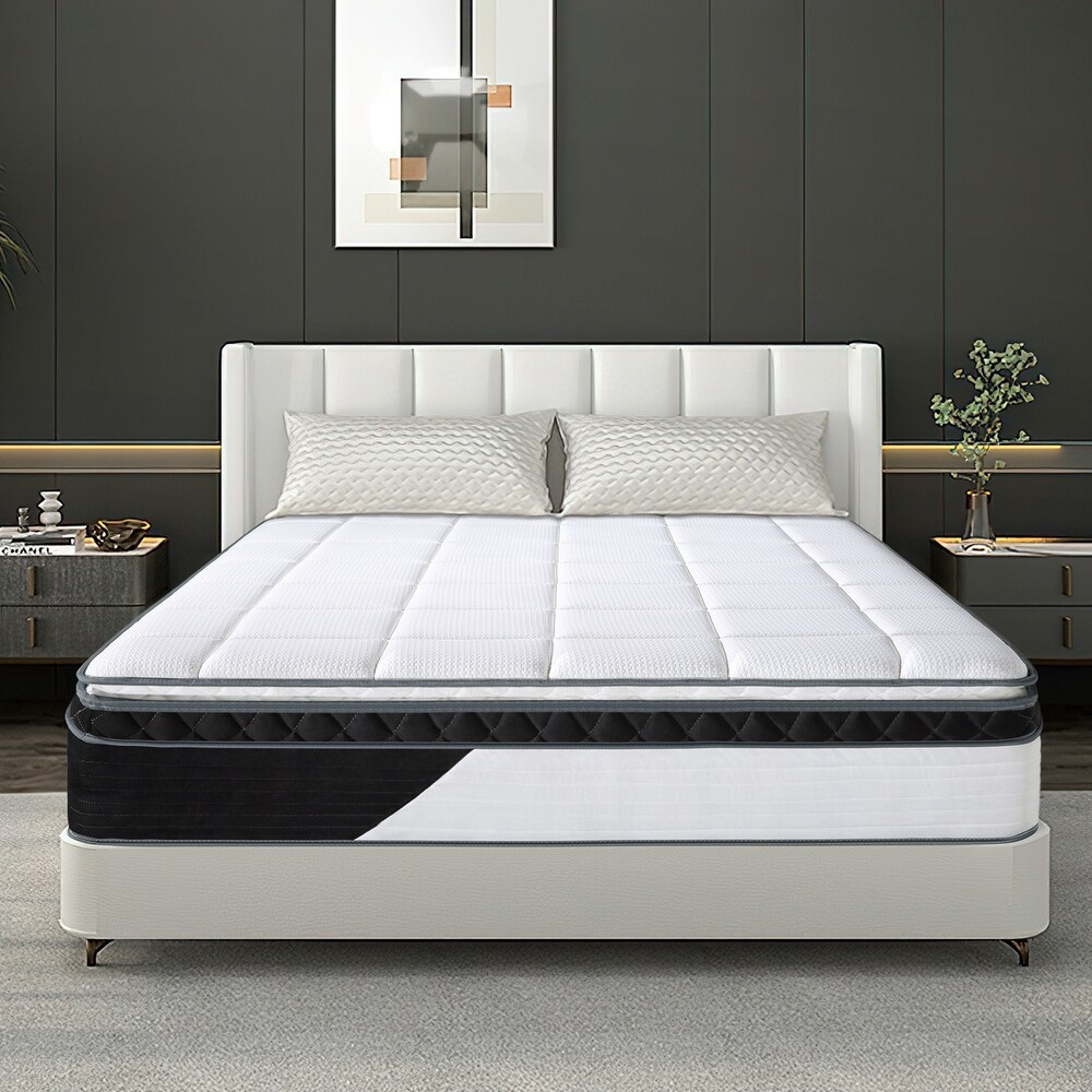 Bedstory 14 Inch Queen Mattress Memory Foam And Innerspring Hybrid Mattress High End Euro Top Mattress In A Box Individually Wrapped Pocket Coils Medium Firm Black Home Kitchen Amazon Com